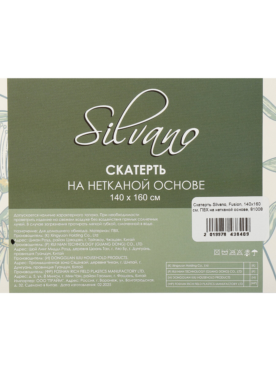 Скатерть Silvano Fusion 140х160 см — стильное решение для кухни и дачи: прочный ПВХ на нетканой основе, легко моется, защищает стол от влаги и пятен.