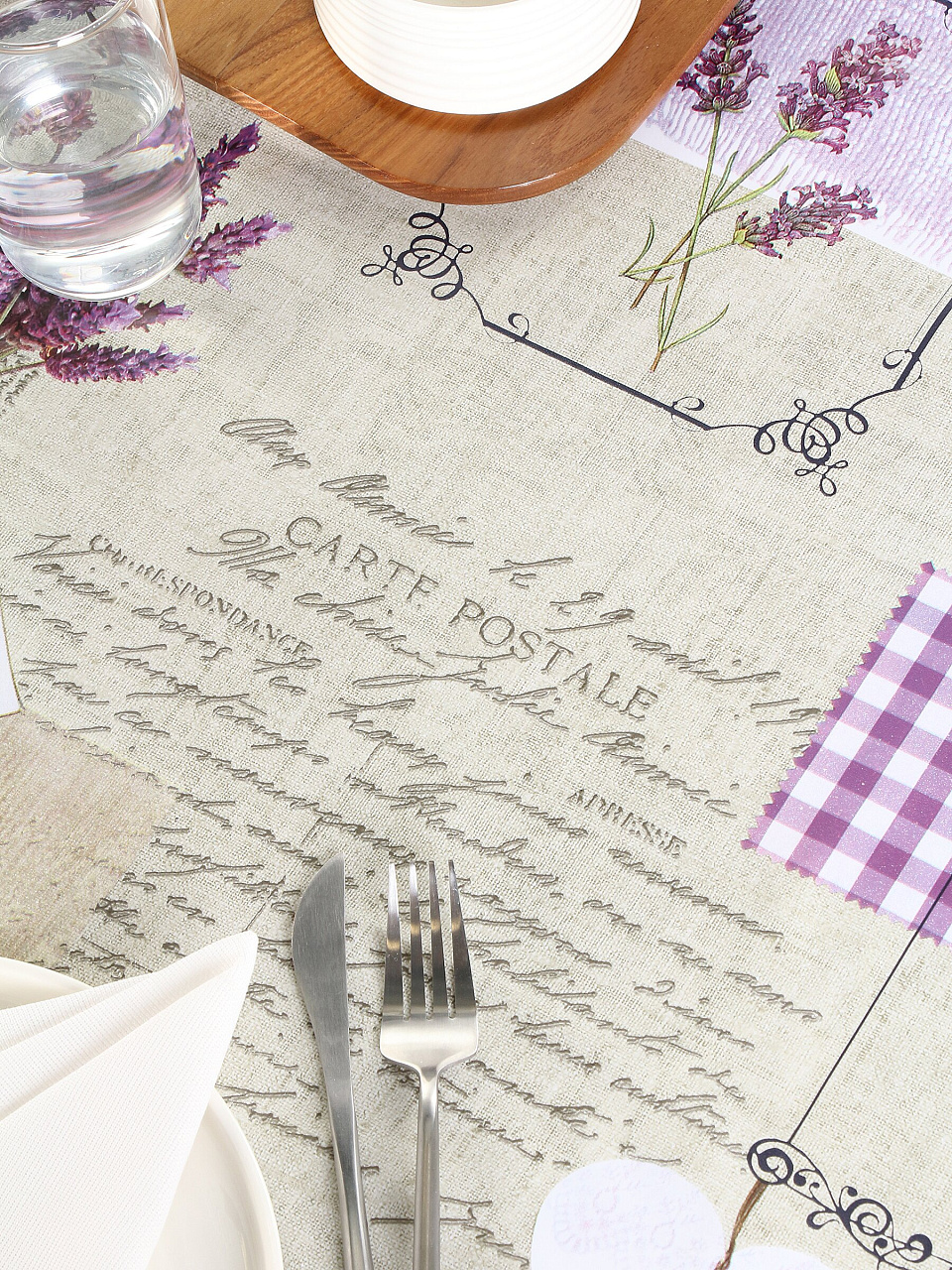 Скатерть выполнена из ПВХ на нетканой основе — она не пропускает влагу, не требует стирки, устойчива к истиранию и быстро очищается обычной губкой.