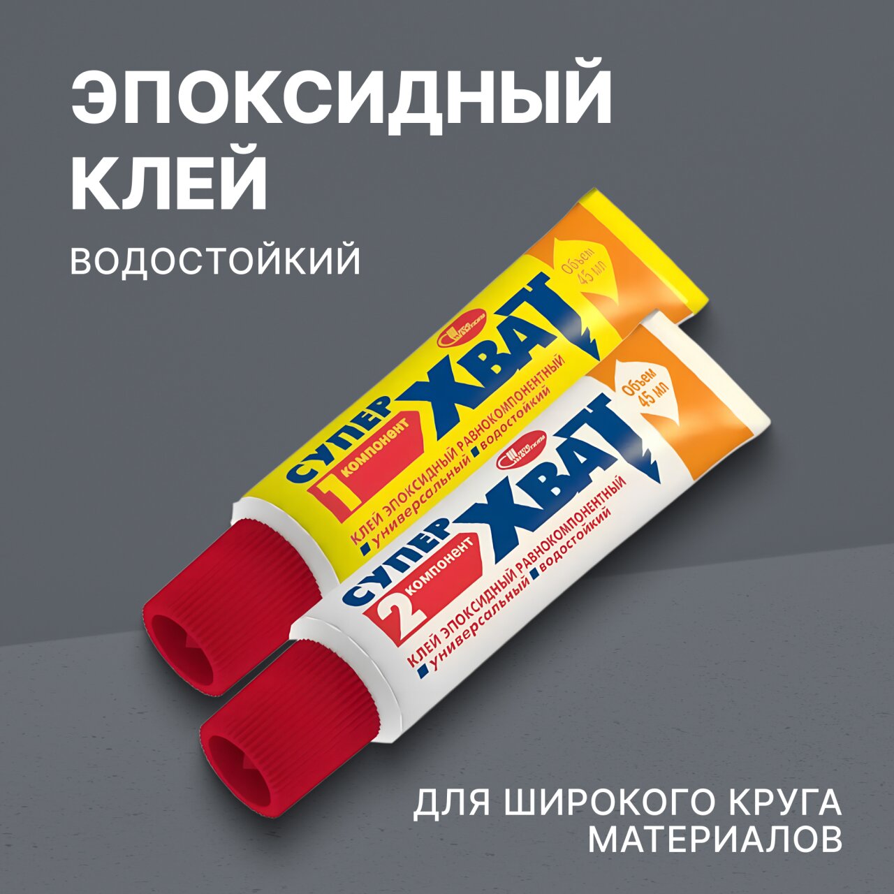 "Супер-Хват" склеивает металлы и их сплавы, керамику, фарфор, стекло, древесину, пластик, декоративно-облицовочные плиты в бытовых и промышленных целях. Клей обеспечивает высокую прочность склеивания за счет отвердевания эпоксидной смолы при смешении обоих компонентов.