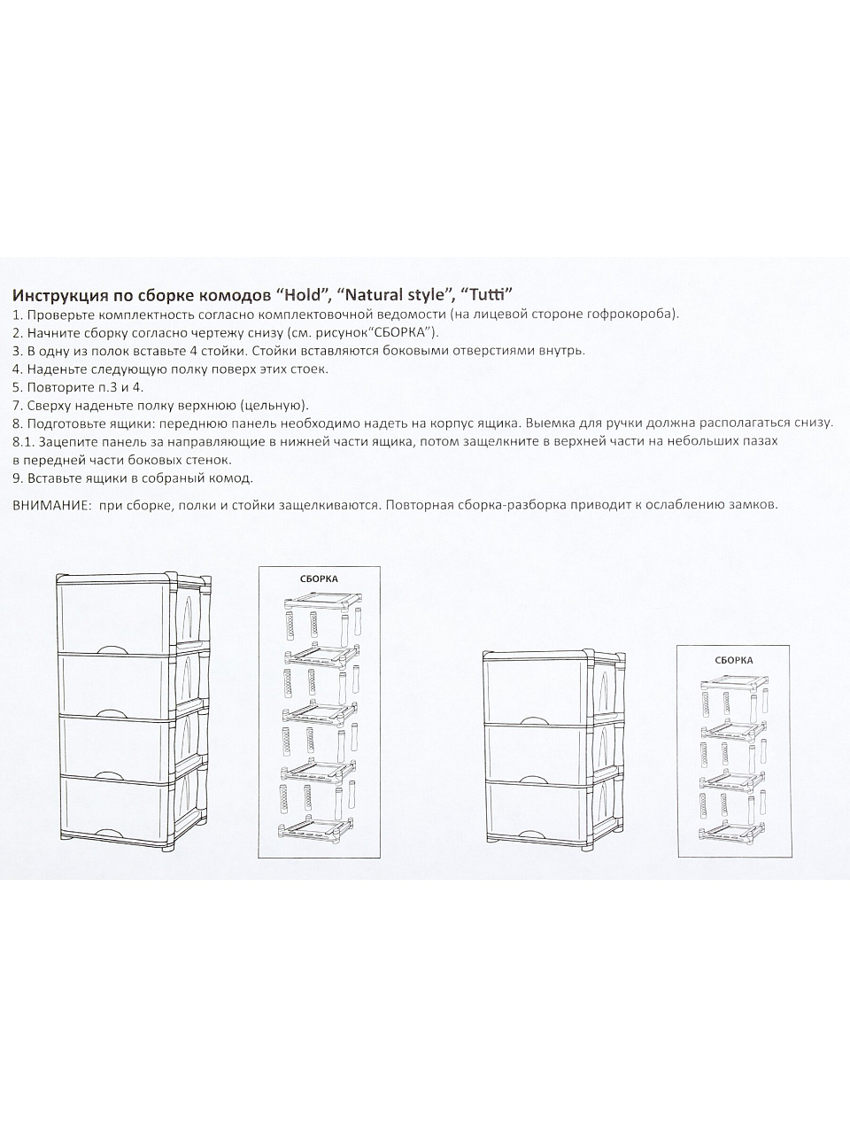 - Сборка комода не требует дополнительных инструментов.