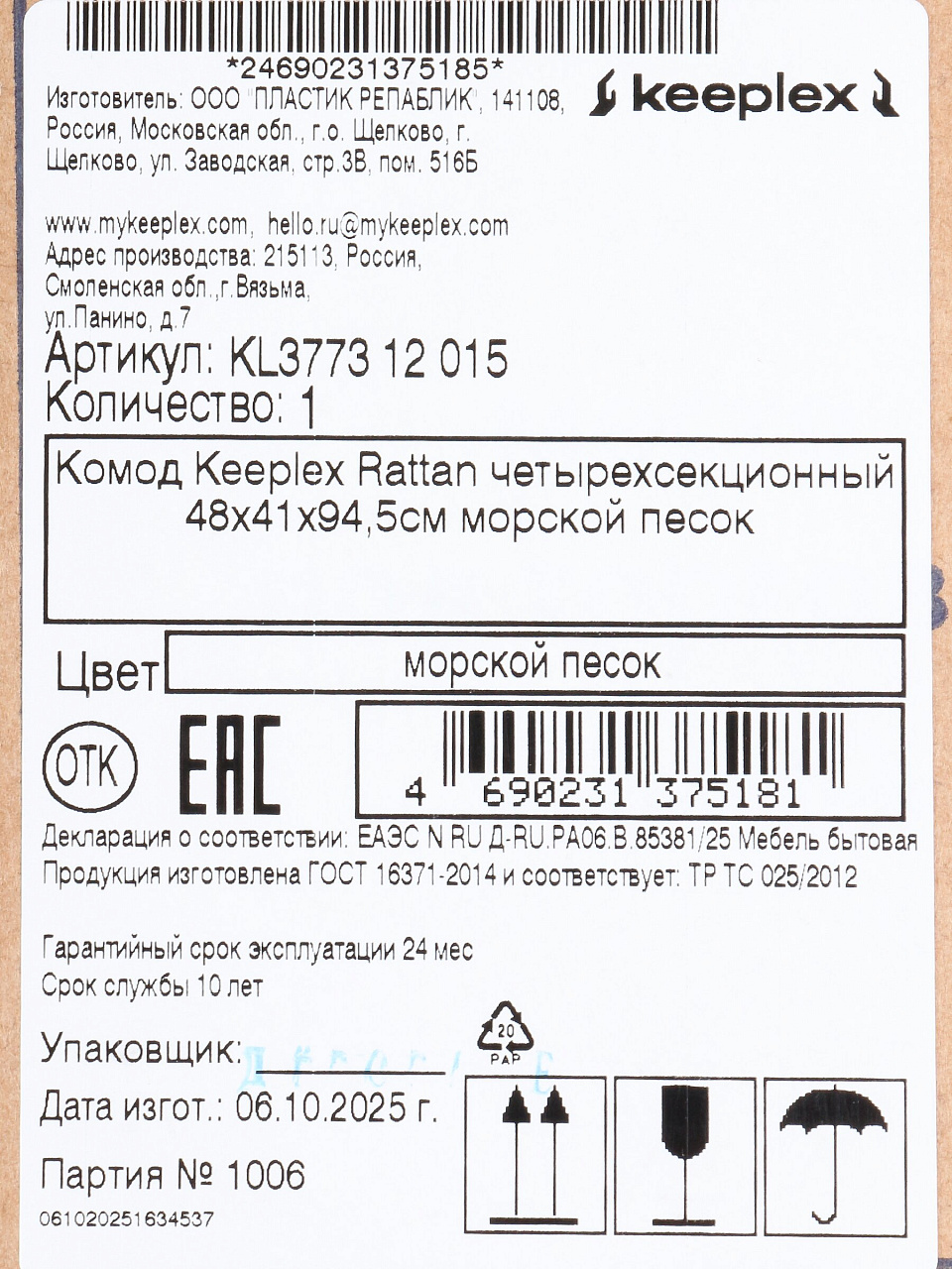 Вы можете приобрести «Комод 4 ящика, Rattan, 48х41х94.5 см, морской песок, KL377312015, Keeplex» и другие товары в нашем интернет-магазине в Курске по низким ценам и с бесплатным самовывозом.