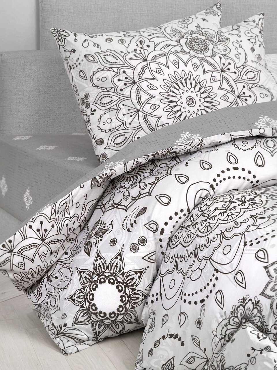 Как выбрать постельное белье для подростка или гостевой комнаты? Этот набор подойдет для всех возрастов благодаря универсальному серому цвету и орнаменту. В отличие от синтетических аналогов, поплин из 100% хлопка «дышит» и не вызывает раздражения. Часто спрашивают: чем отличается простыня на резинке от обычной? Благодаря резинке ткань не сбивается ночью, что особенно важно на даче или в детской. Подходит ли для подарка? Да — комплект упакован в подарочную коробку и смотрится презентабельно.