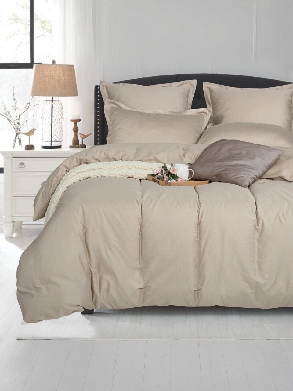 Комплект выполнен из натурального хлопкового сатина — прочного, гладкого, гипоаллергенного материала, который сохраняет форму и цвет после многократных стирок при 40°С.