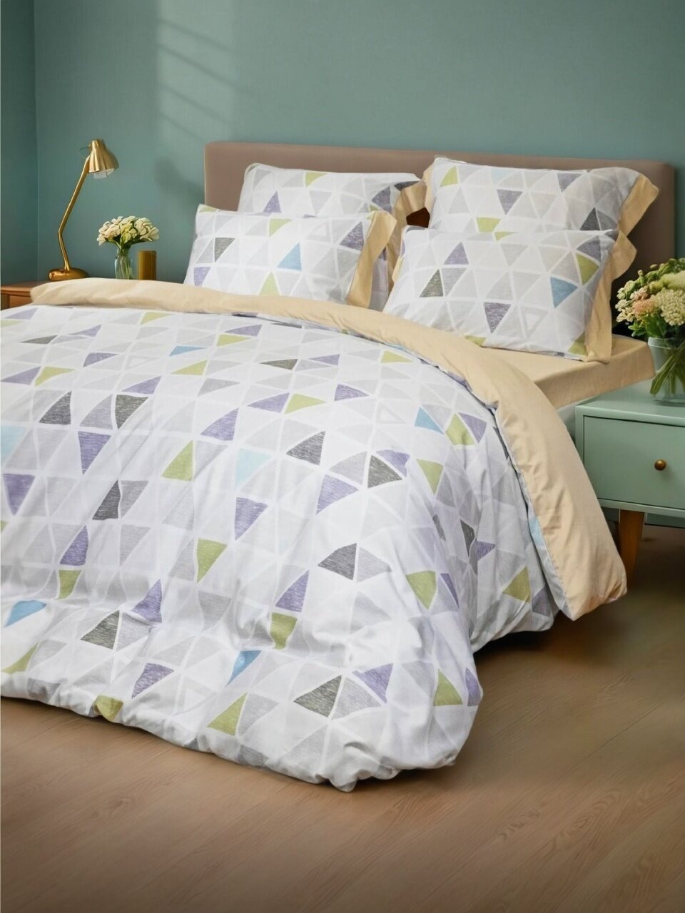 Постельное белье евро Cleo Soft Tencel Геометрия — идеальный выбор для комфортного сна: 6 предметов, натуральный тенсель, универсальные размеры для любой спальни.