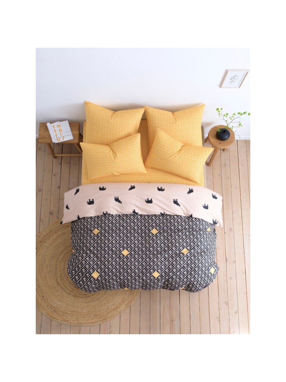 - Увеличенный размер простыни 200х215 см и пододеяльника 175х215 см — подходит для классических и европейских двуспальных кроватей