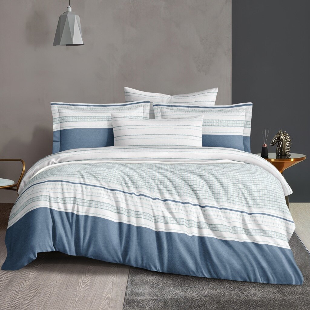 В этом комплекте простыня 230x250 см, пододеяльник 200x220 см, наволочки 50x70 и 70x70 см — оптимально для стандартных евро-кроватей и подушек разных форматов.
