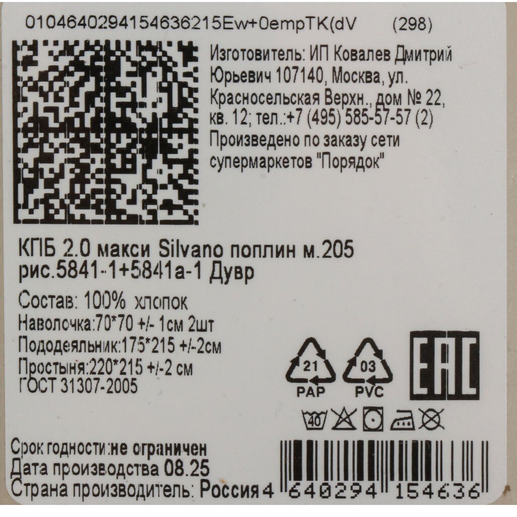 Постельное белье 2-спальный Silvano «Дувр» из поплина: идеальный выбор для комфортного сна, стильного интерьера и подарка. Размер 215х220, 100% хлопок.