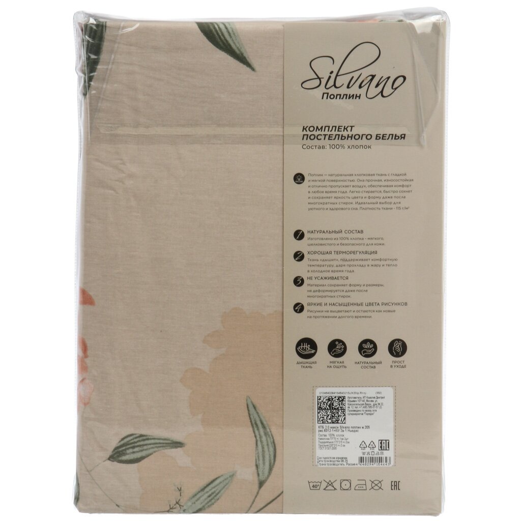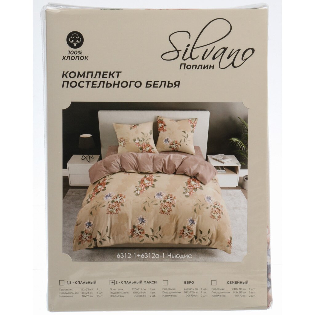 Постельное белье 2-спальное Silvano Ньюдис из поплина: бежевый комплект 215х220 см с цветочным дизайном — уют, долговечность и идеальный подарок.