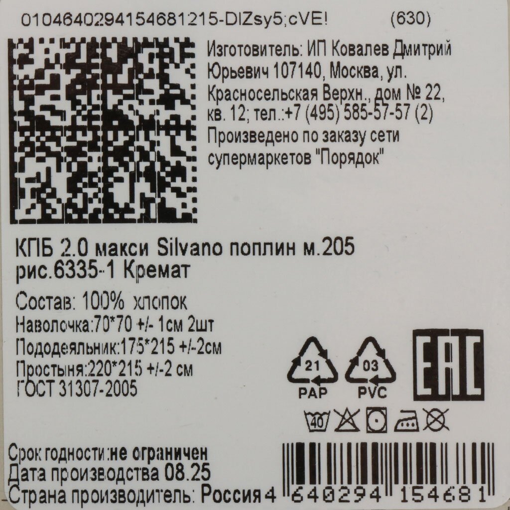 Постельное белье 2-спальное Silvano Кремат: премиальный хлопковый поплин, размер 215х220 см, идеальный подарок и уют для вашего дома.