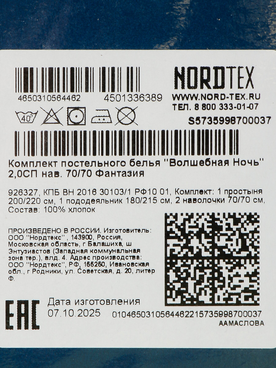 Вы можете приобрести «Постельное белье 2-спальное, простыня 200х220 см, 2 наволочки 70х70 см, пододеяльник 180х215 см, Волшебная ночь, ранфорс, Фантазия» и другие товары в нашем интернет-магазине в Брянске по низким ценам и с бесплатным самовывозом.
