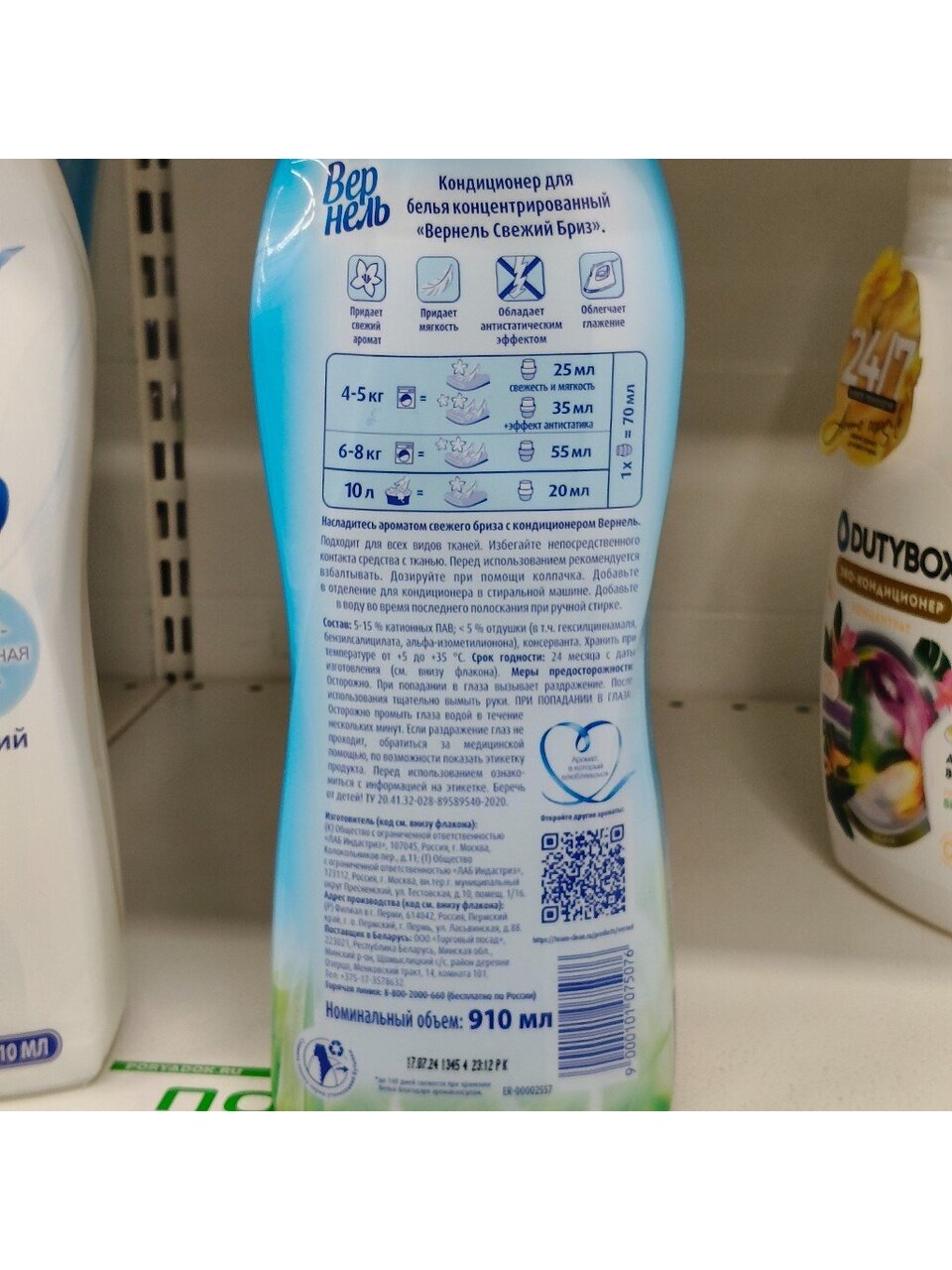 Вы можете приобрести «Кондиционер для белья Вернель, 0.91 л, Свежий бриз» и другие товары в нашем интернет-магазине в Железногорске по низким ценам и с бесплатным самовывозом.