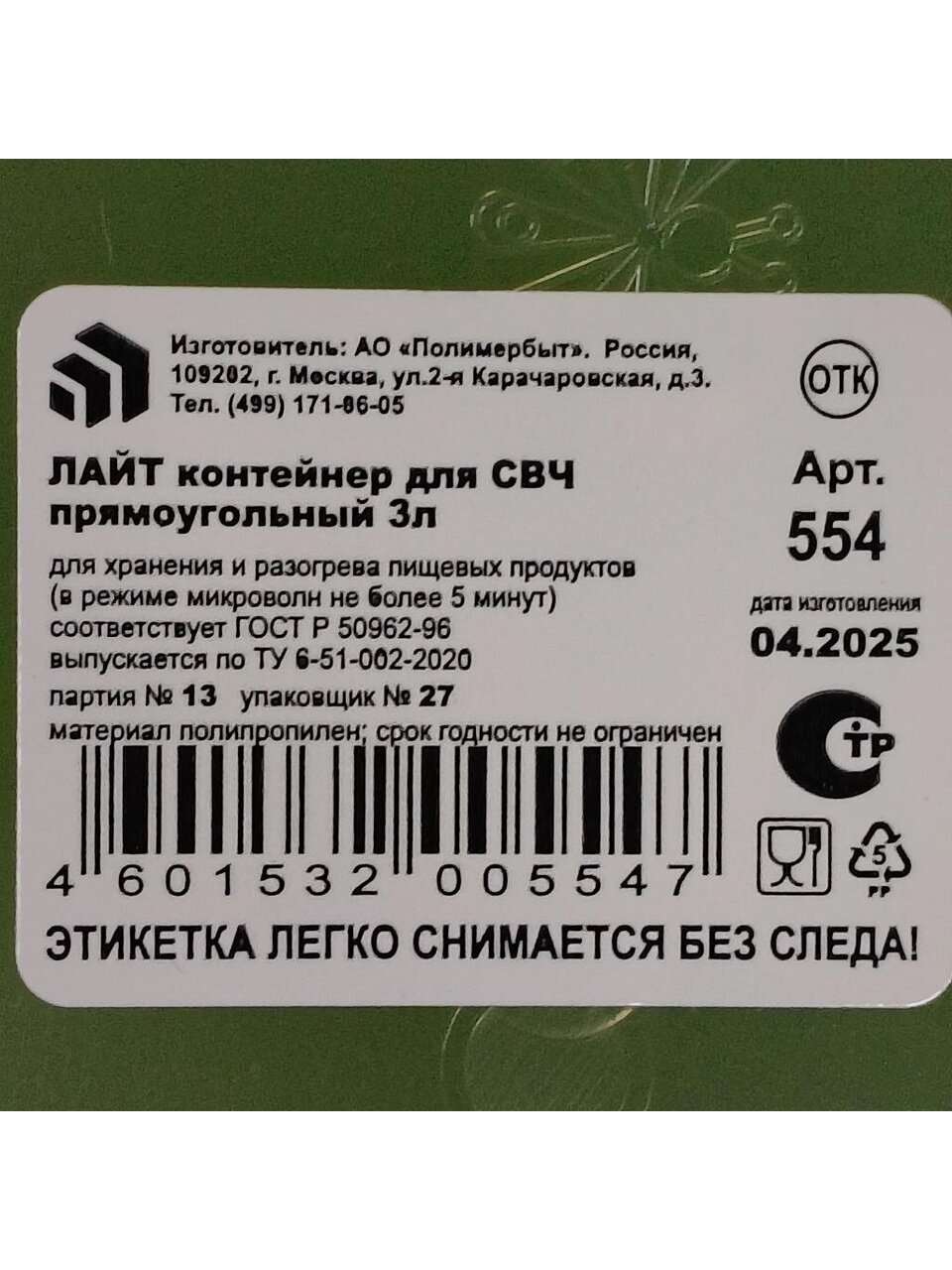 Контейнер пищевой пластиковый 3 л Полимербыт — это универсальный выбор для хранения продуктов, заморозки, транспортировки и использования в микроволновой печи. Благодаря прочному пищевому пластику контейнер не впитывает запахи, не окрашивается и выдерживает перепады температур, что важно для домашних заготовок и длительного хранения. Часто спрашивают: «Подходит ли контейнер для горячей еды?» — да, материал безопасен для СВЧ, не выделяет вредных веществ.