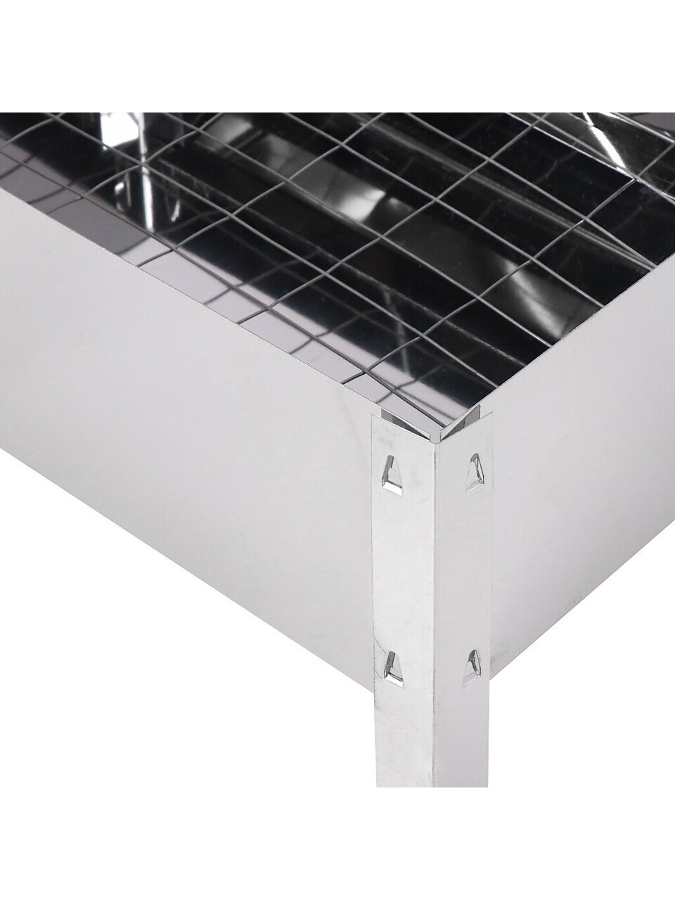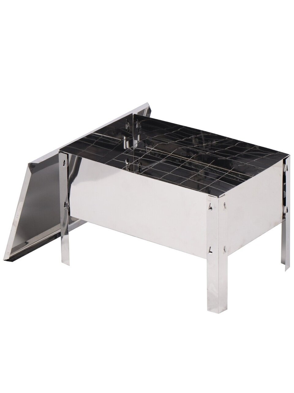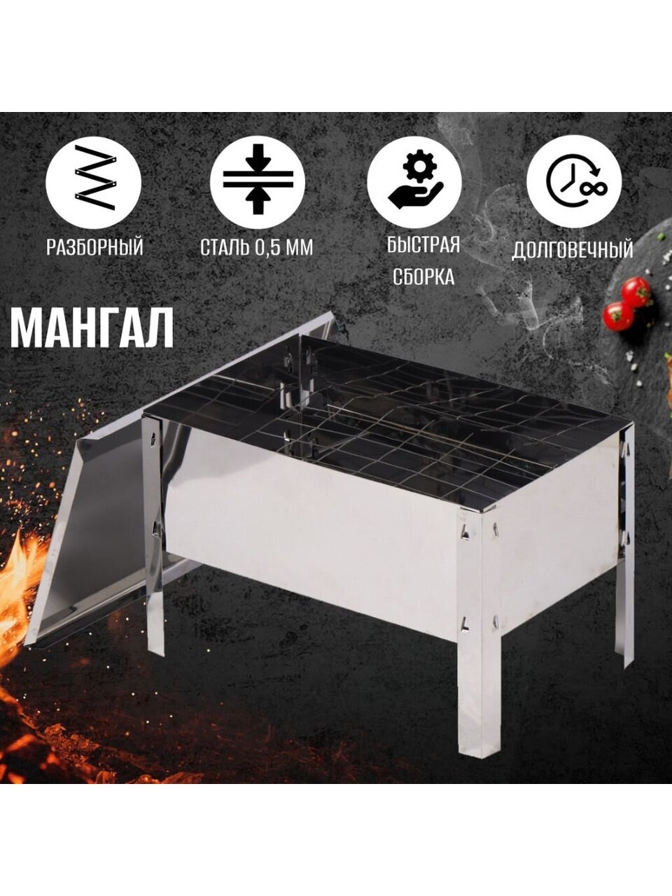 Применение: при жарке продуктов используется как обычный мангал. При копчении вставляется сетка, накрывается крышкой и используется как коптильня.