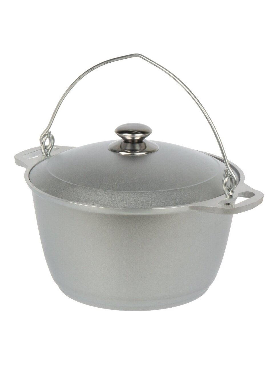 Походный котелок Kukmara из литого алюминия хорошо подходит для варки, тушения и томления, так как имеет отличные теплораспределительные и теплоаккумулирующие свойства, а блюда в нем получаются сочными и ароматными.