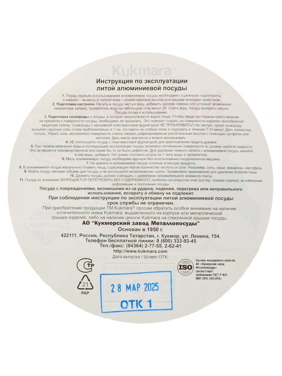 Посуда Kukmara, изготовленная из литого алюминия, сочетает в себе доступность, традиционный дизайн и непревзойдённое качество, которое проверено временем и тысячами довольных покупателей.