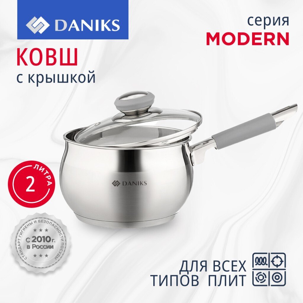 Ковшик посуды Daniks Модерн выполнен из высококачественной нержавеющей стали. Крышка из прозрачного стекла позволяют контролировать процесс приготовления пищи. Металлическая ручка удобна, прочна и не нагревается при использовании посуды.