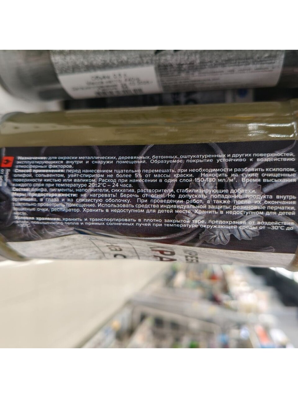 Состав: Олифа, пигменты,наполнители, сиккатив, растворители, стабилизирующие добавки.