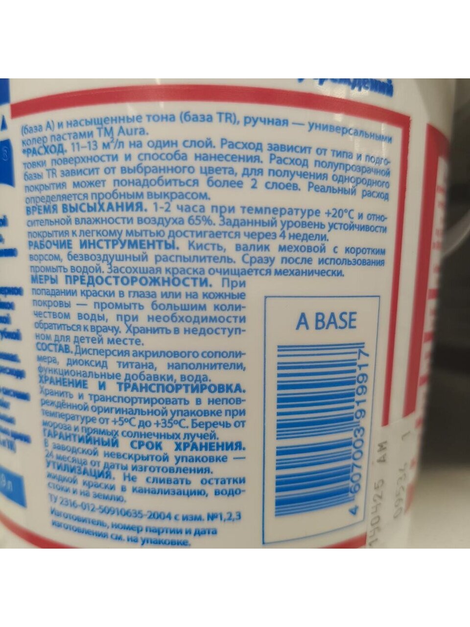 База А — белый; можно использовать в качестве белой краски или для колеровки. База TR – полупрозрачный; использовать только после колеровки!.