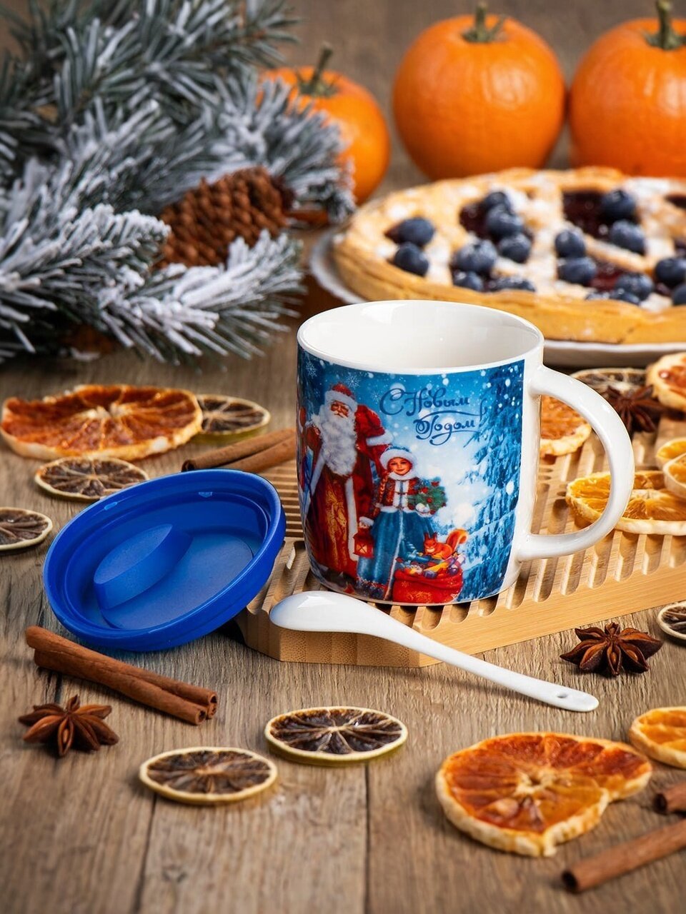 Боитесь, что кружка быстро потеряет вид? Керамика устойчива к царапинам, рисунок не стирается при аккуратном мытье. Не рекомендуется мыть в посудомоечной машине — ручная мойка сохранит яркость декора надолго. Подходит для чая, кофе, какао, использования дома, в офисе или на даче. Комплект из крышки и ложки делает эту кружку удобной для зимних напитков и уютных вечеров.