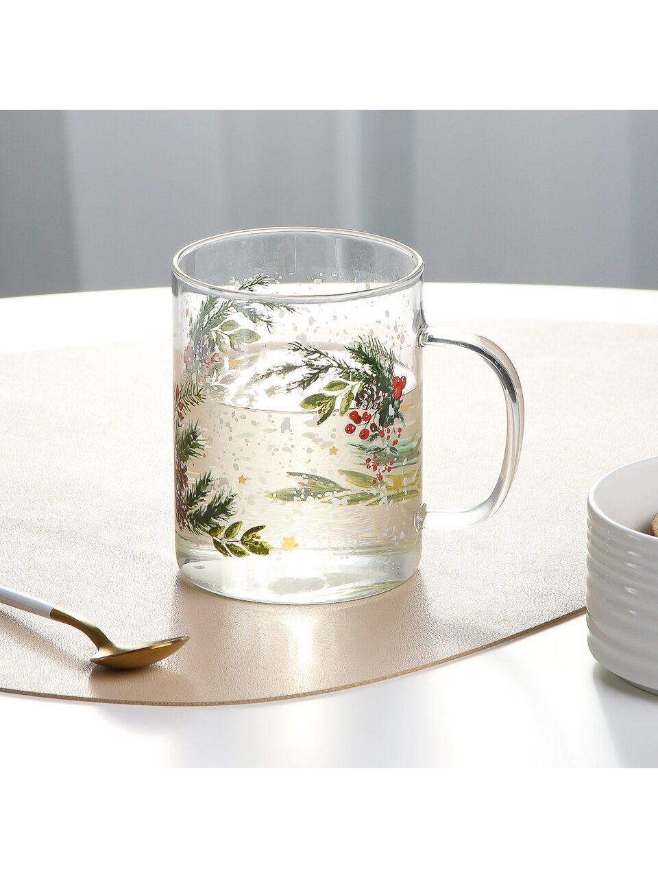 Стеклянная кружка Daniks "Еловая ветвь", 400 мл — универсальный подарок в подарочной упаковке: уют для дома и стиль для офиса.