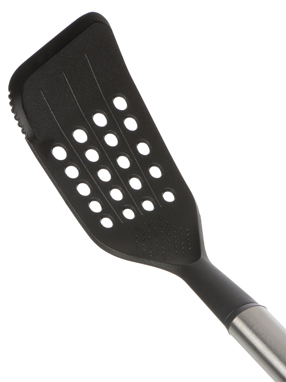 Термостойкий нейлон и хромированная ручка обеспечивают долговечность, простоту ухода и универсальность в любых условиях.