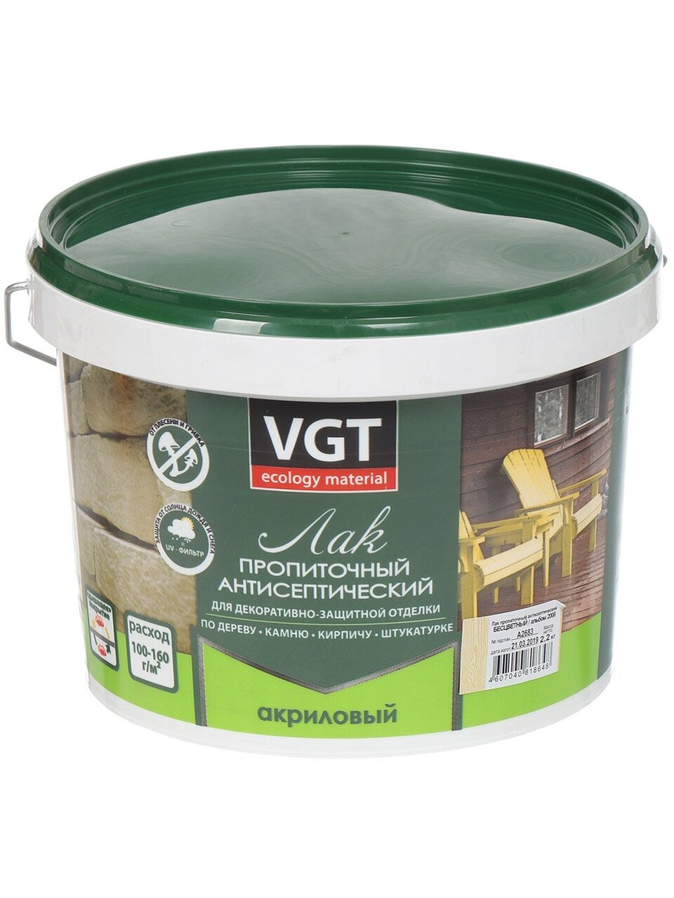 Вы можете приобрести «Лак VGT, антисептик, полуглянцевый, полиакриловый, бесцветный, для внутренних и наружных работ, 2.2 кг» и другие товары в нашем интернет-магазине в Шахтах по низким ценам и с бесплатным самовывозом.