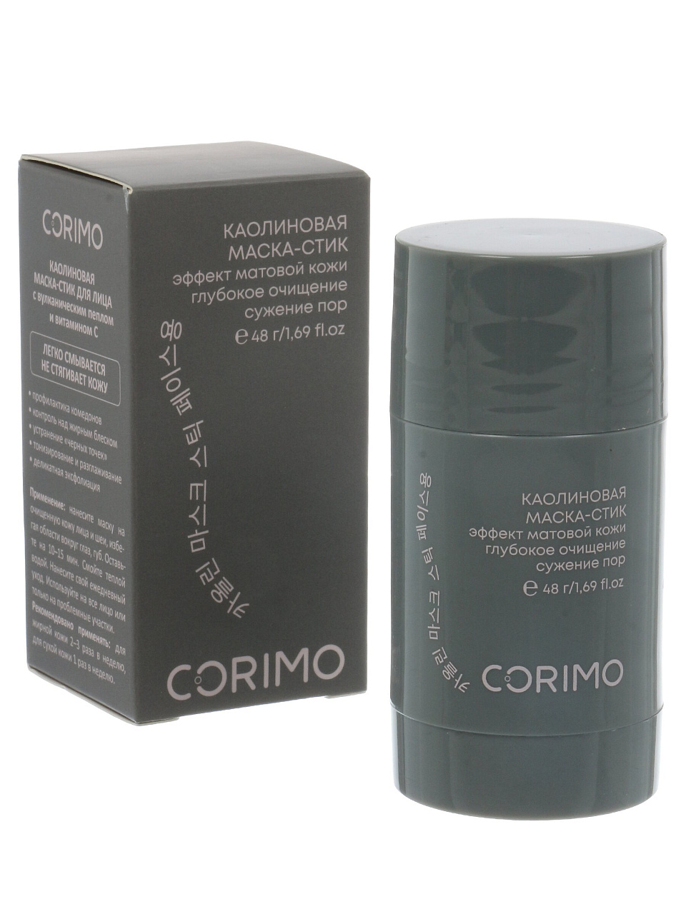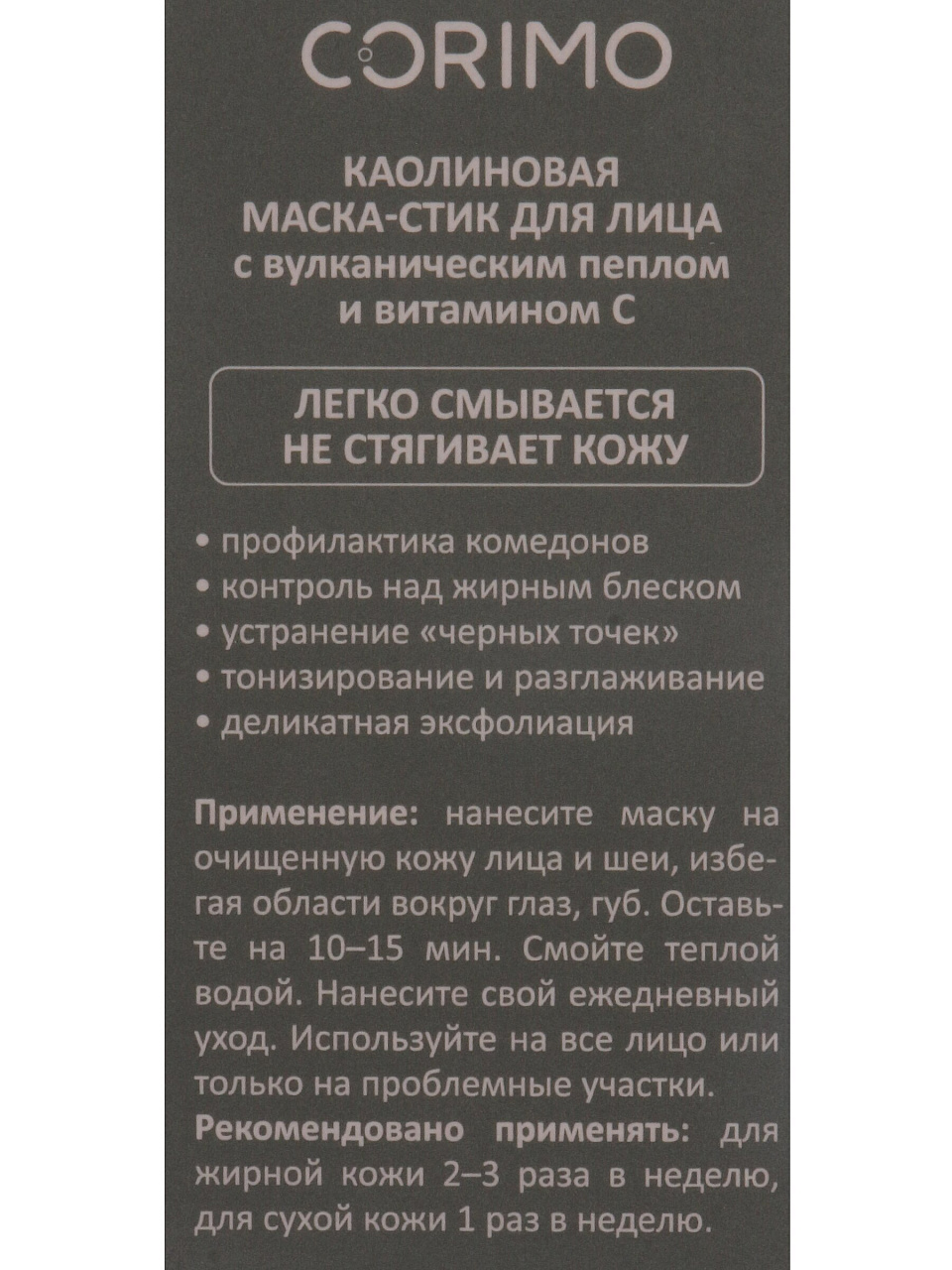 Маска для лица Corimo с вулканическим пеплом и витамином С: естественное сияние, глубокое очищение, подходит для всех типов кожи. 48 г — идеальный формат для регулярного ухода.