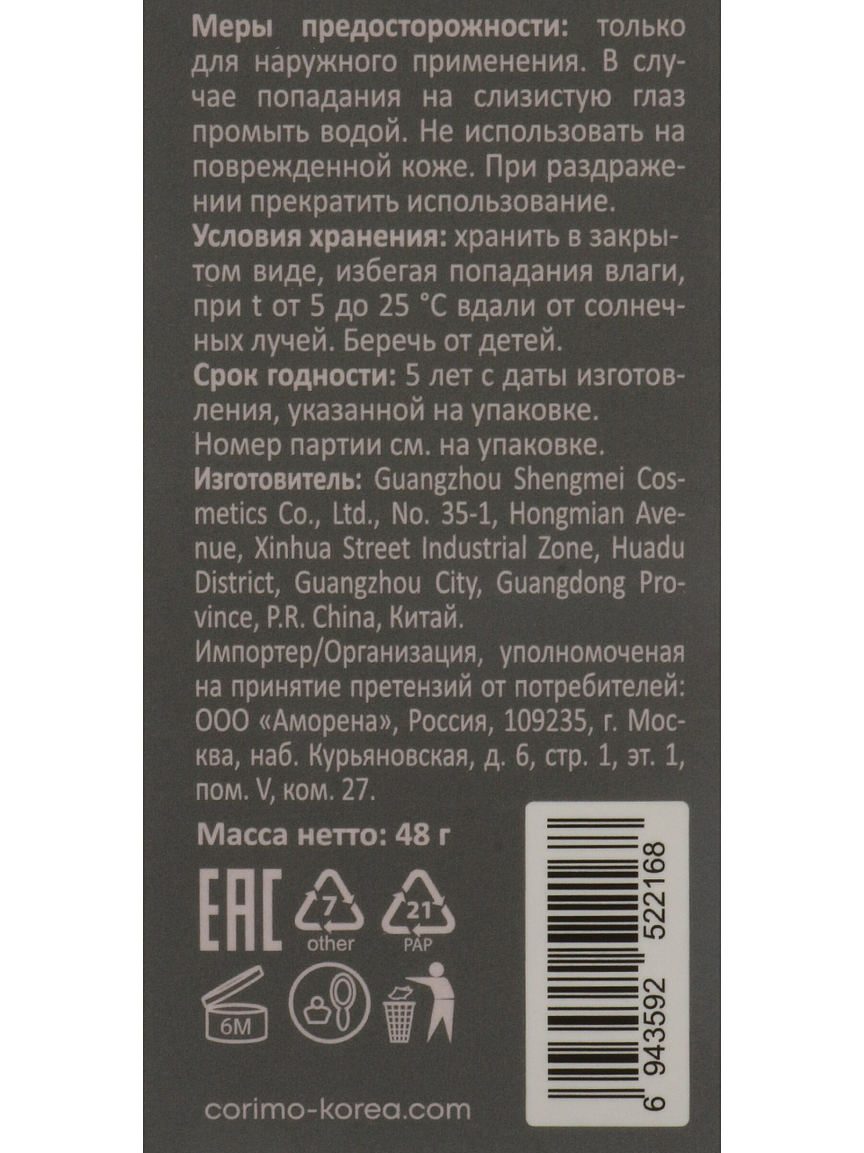 Какой объём и состав у маски Corimo?