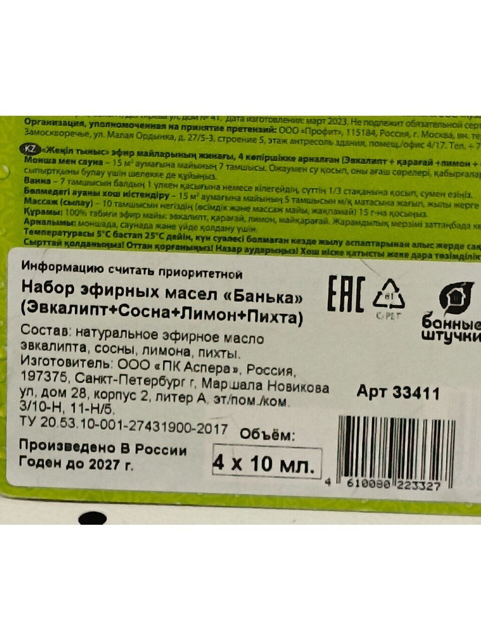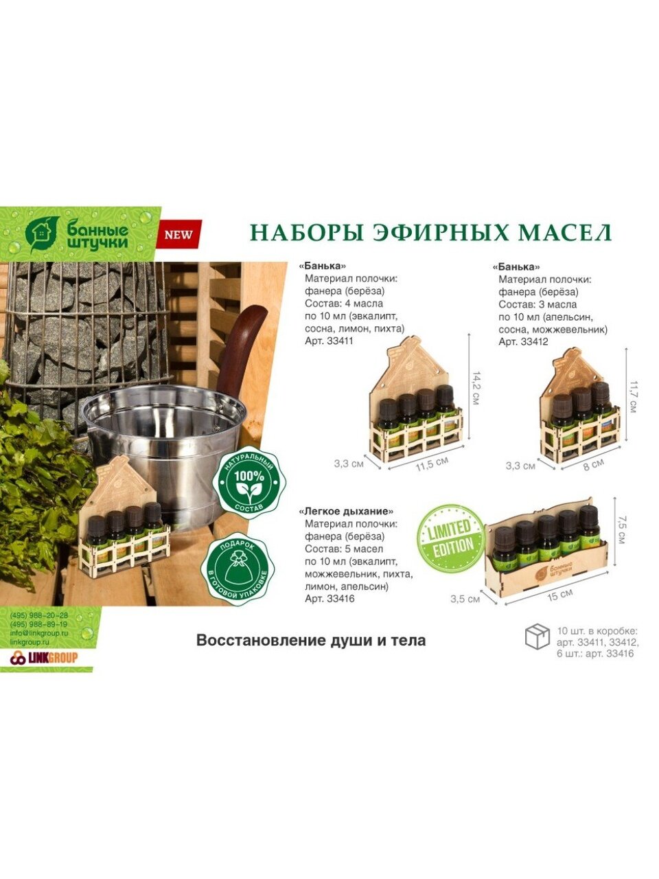 Набор эфирных масел для бани — это уникальный продукт, который создаёт особую атмосферу и дарит незабываемые ощущения. Масло изготовлено из натуральных компонентов.