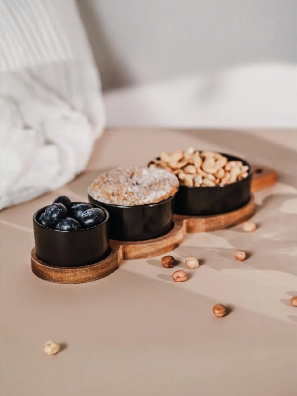 Менажница Apollo Alturo ALT-03 идеально подходит для сервировки разнообразных блюд и закусок. Ее элегантный черный цвет подчеркнет изысканность вашей сервировки, а три удобные секции позволят разделить разные виды угощений, сохраняя их вкус и аромат. Компактные размеры 35х12х1.5 см делают эту менажницу удобной в использовании, а деревянная подставка добавляет устойчивости и надежности.