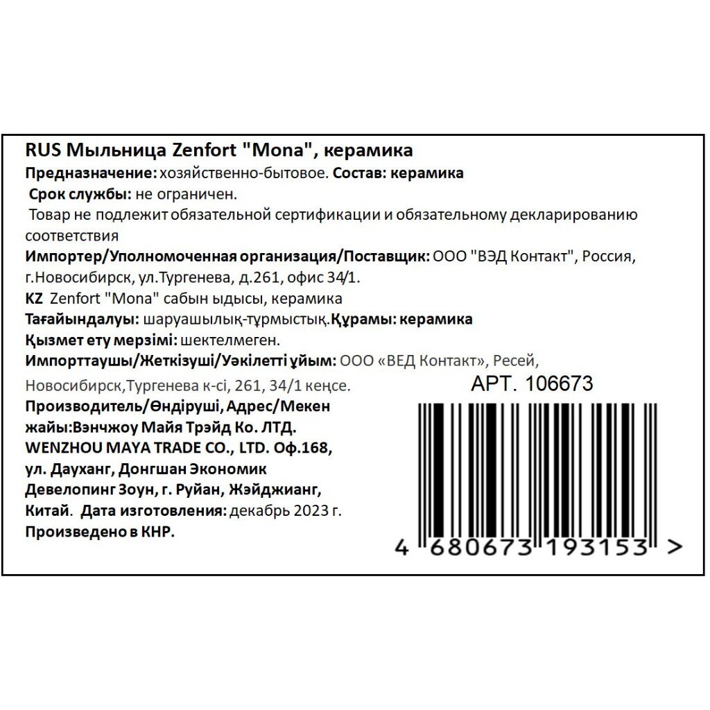 Мыльница настольная, Zenfort, Mona, керамика, 11.8х8х3 см, белая, 106673