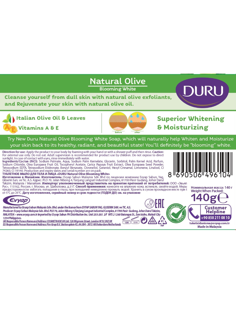 Оформите заказ сейчас — покупайте мыло Duru Olive Blooming White недорого с быстрой доставкой и будьте уверены в качестве оригинального продукта из Малайзии.
