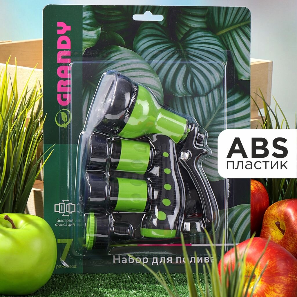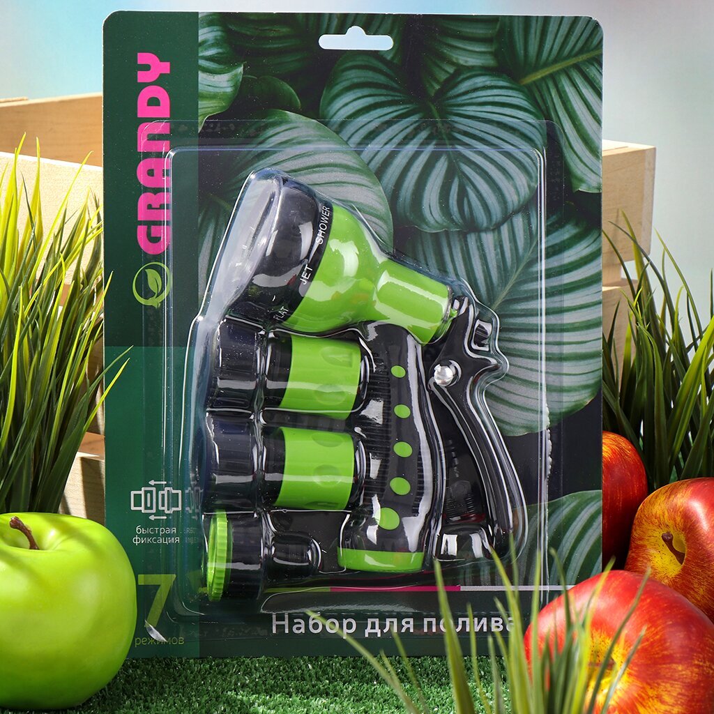 Набор для полива Grandy JS-9369-3/4 — идеальное решение для ухода за садом, огородом и растениями на даче. 7-режимный пистолет обеспечивает точный и удобный полив, а надежные фитинги и штуцер позволяют быстро подключить шланг к крану с диаметром 1/2" или 3/4". Прочный пластик гарантирует долгий срок службы. Комплект из 4 предметов подходит для деревьев, клумб и грядок, облегчая ежедневный уход за зелеными насаждениями.