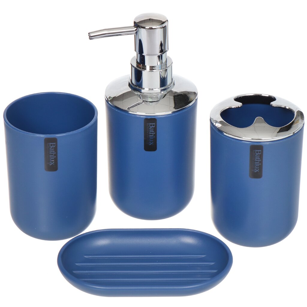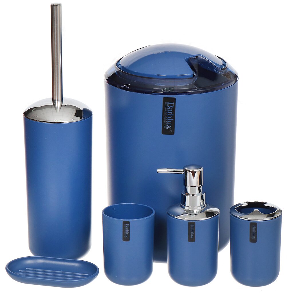 Все элементы набора выполнены в одном стиле. Это позволяет создать в ванной комнате единый и гармоничный функционально-декоративный ансамбль. Яркий синий цвет делает этот набор идеальным дополнением любой современной ванной комнаты!
