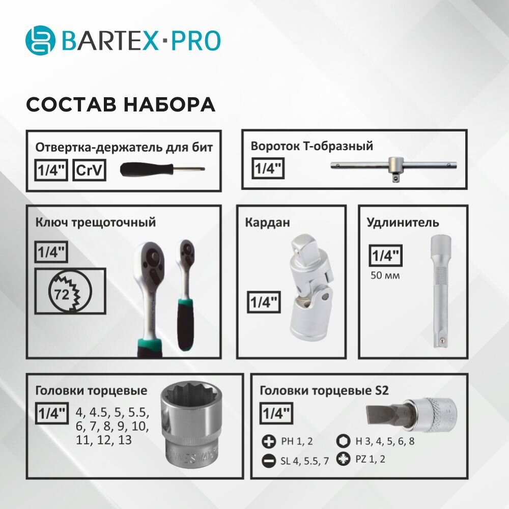 Вы можете приобрести «Набор слесарных инструментов Bartex, Pro, 1/4", 6-гранный, сталь, кейс, 29 предметов» и другие товары в нашем интернет-магазине в Брянске по низким ценам и с бесплатным самовывозом.
