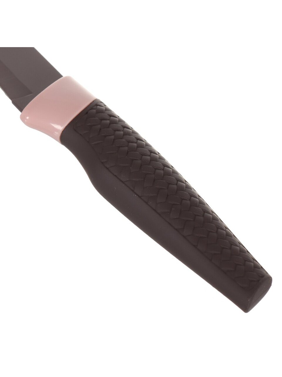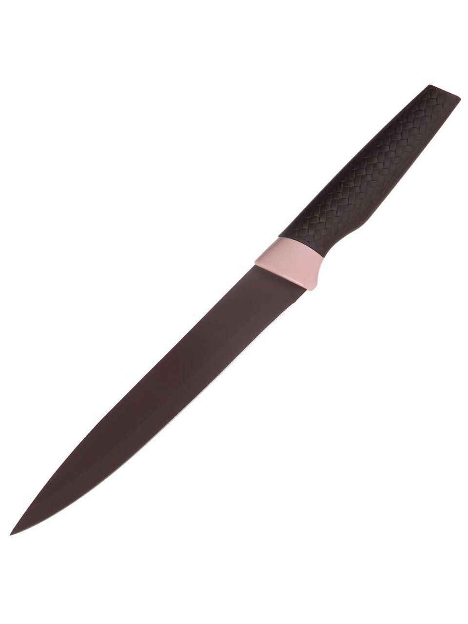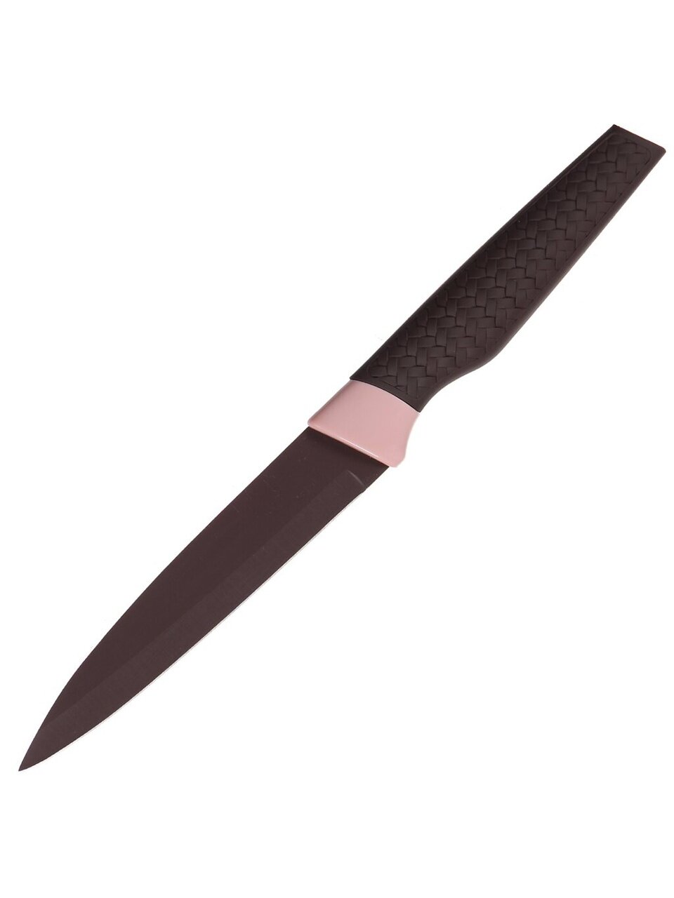 В набор входит шесть предметов: шеф-нож, нож для овощей, универсальный нож, хлебный нож и разделочный нож, что позволяет легко справляться с любыми задачами — от нарезки хлеба до тонкой шинковки овощей и разделки мяса. Оптимальная длина лезвий (20 см, 20 см, 20 см, 12.5 см, 9 см) обеспечивает точность и легкость в использовании. Материал лезвий — нержавеющая сталь — отличается устойчивостью к коррозии, не впитывает запахи и сохраняет остроту даже при регулярном использовании. Пластиковая рукоятка удобно ложится в руку и препятствует скольжению, что делает процесс приготовления пищи безопасным и приятным.