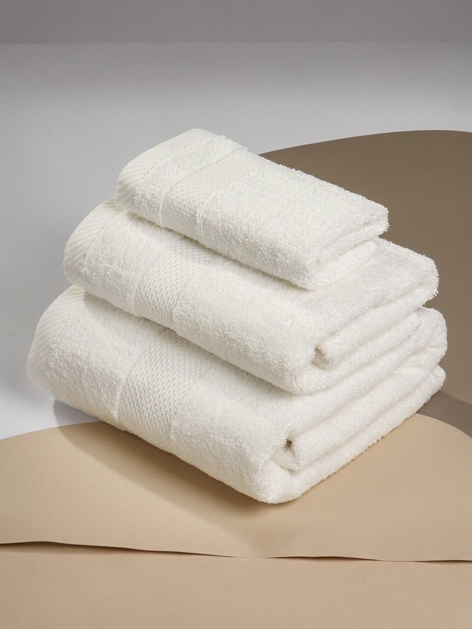 Набор включает три полотенца различных размеров: 30х50 см для лица и рук, 50х90 см для тела и 70х140 см для полноценного обертывания после душа или ванны. Изготовленные из 100% хлопка, они обладают плотностью 400 г/м2, что гарантирует мягкость и высокую впитываемость.