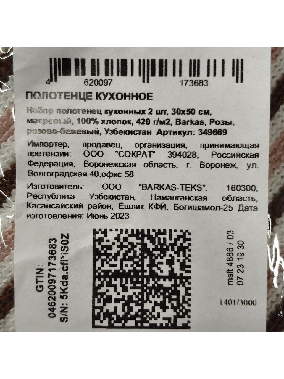 Вы можете приобрести «Набор полотенец кухонных 2 шт, 30х50 см, махровый, 100% хлопок, 420 г/м2, Barkas, Розы, розово-бежевый, Узбекистан» и другие товары в нашем интернет-магазине в Воронеже по низким ценам и с бесплатным самовывозом.