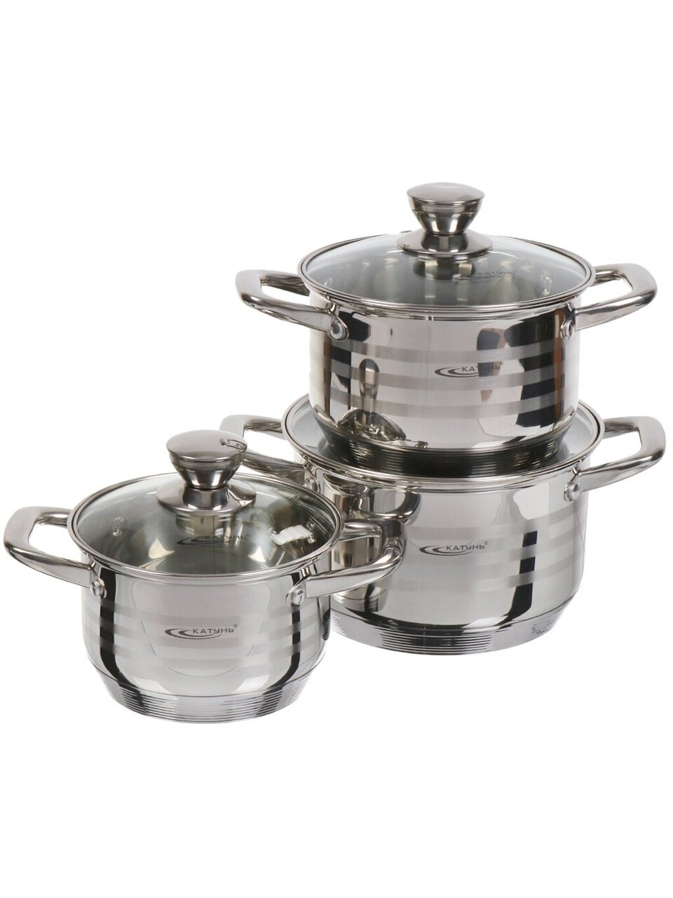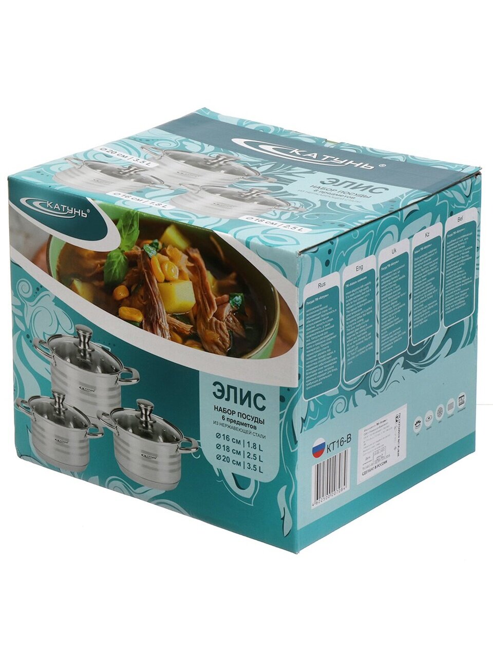 Вы можете приобрести «Набор посуды нержавеющая сталь, 6 предметов, кастрюли 1,8, 2.5, 3.5 л, индукция, Катунь, Элис, КТ16-В» и другие товары в нашем интернет-магазине в Шахтах по низким ценам и с бесплатным самовывозом.