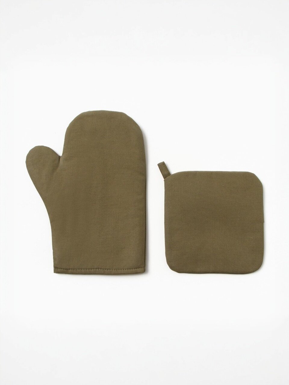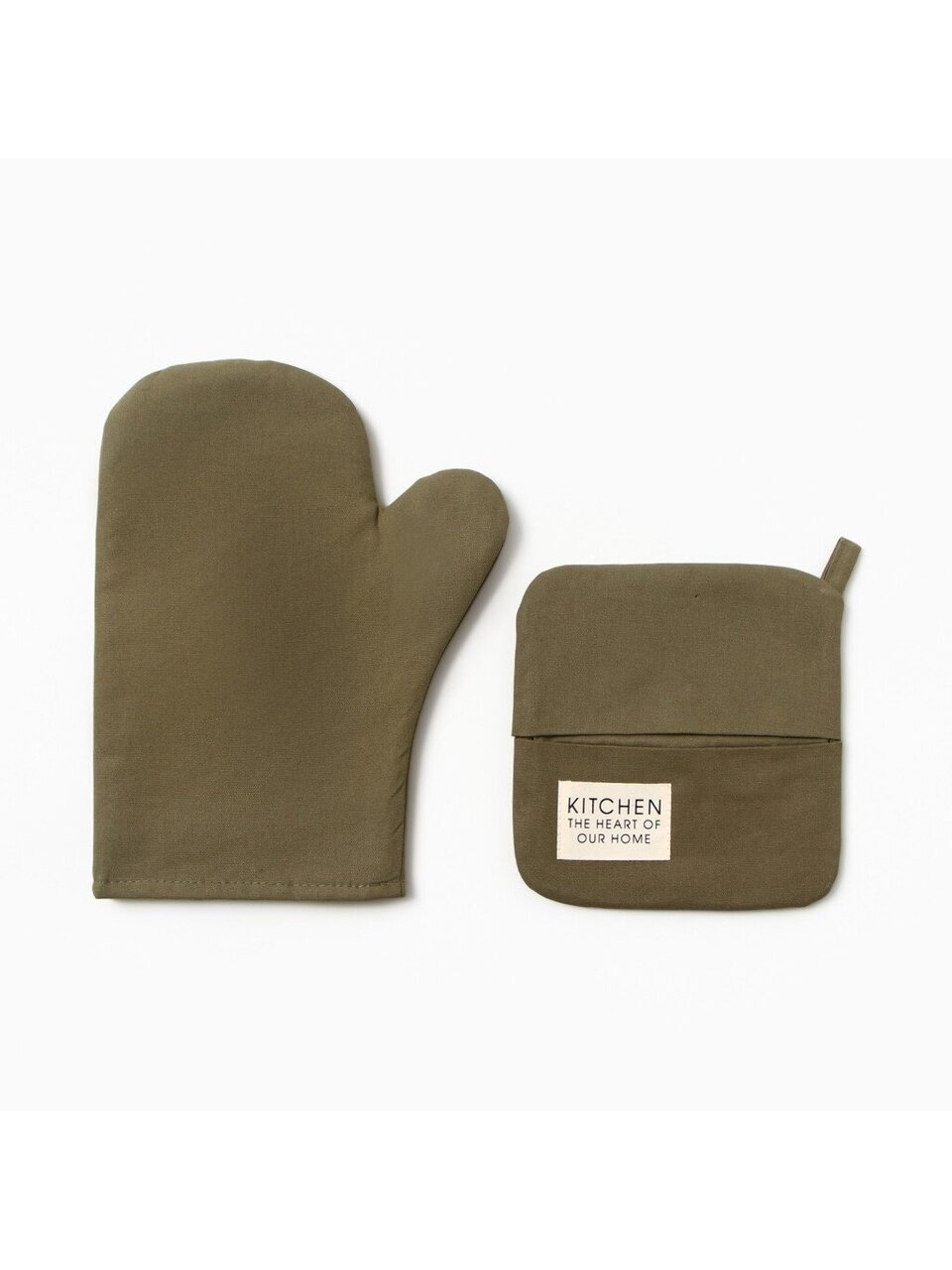 Кухонный набор включает в себя варежку и прихватку, которые обеспечивают надежную защиту от ожогов и делают процесс приготовления пищи более безопасным и приятным. Зеленый цвет комплекта придаст свежести и природной гармонии вашему кухонному пространству, создавая атмосферу спокойствия и умиротворения.