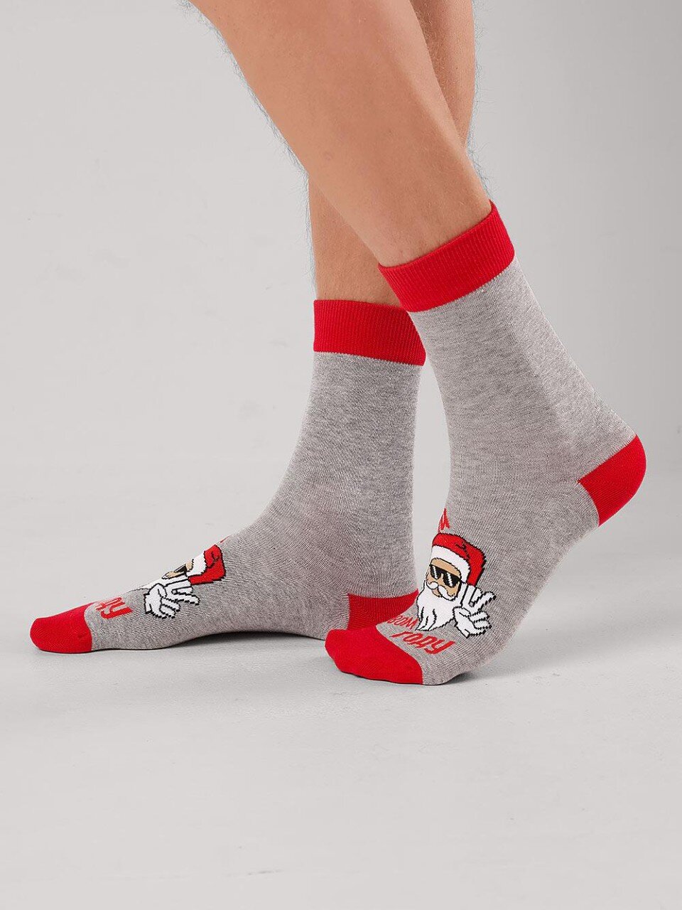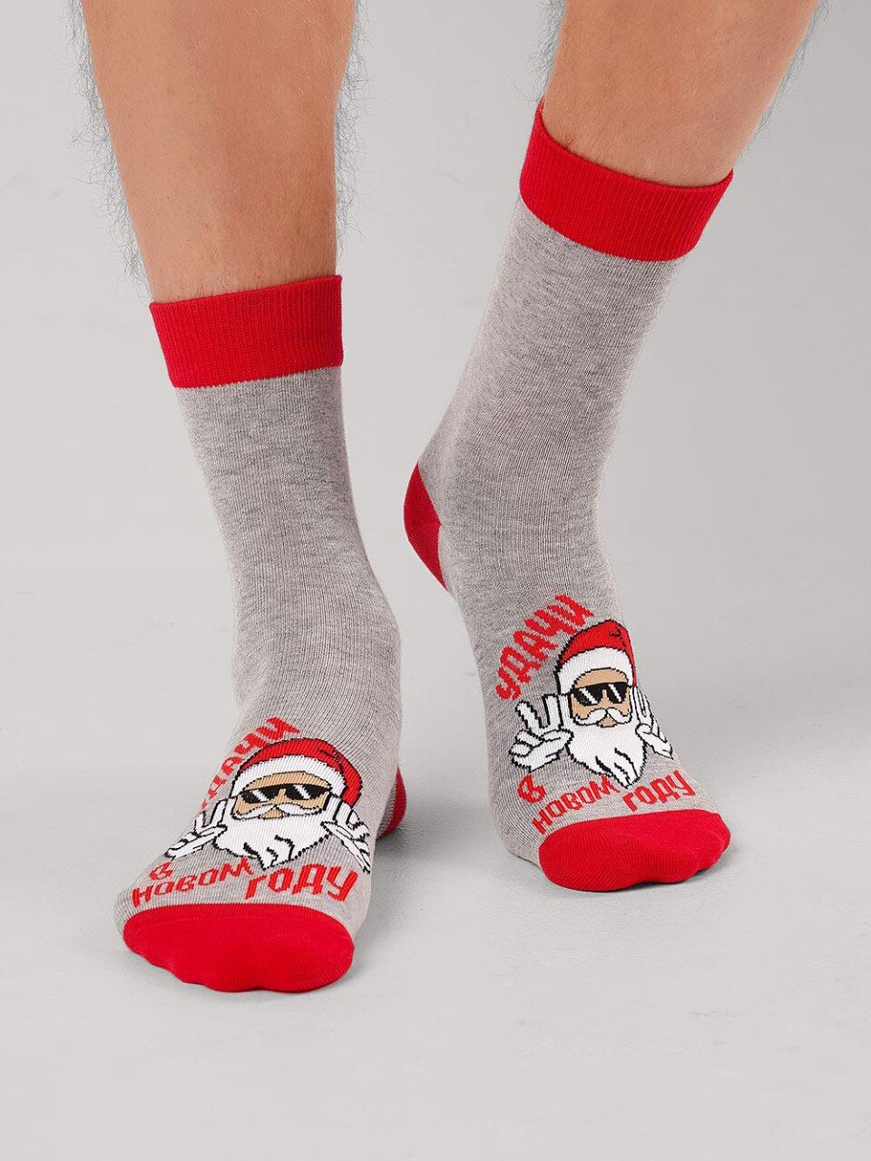 Мужские новогодние носки Clever с Дедом Морозом: уют, тепло и стильный подарок для зимы. Размер 25, меланж серый, хлопок. Закажите с выгодой!
