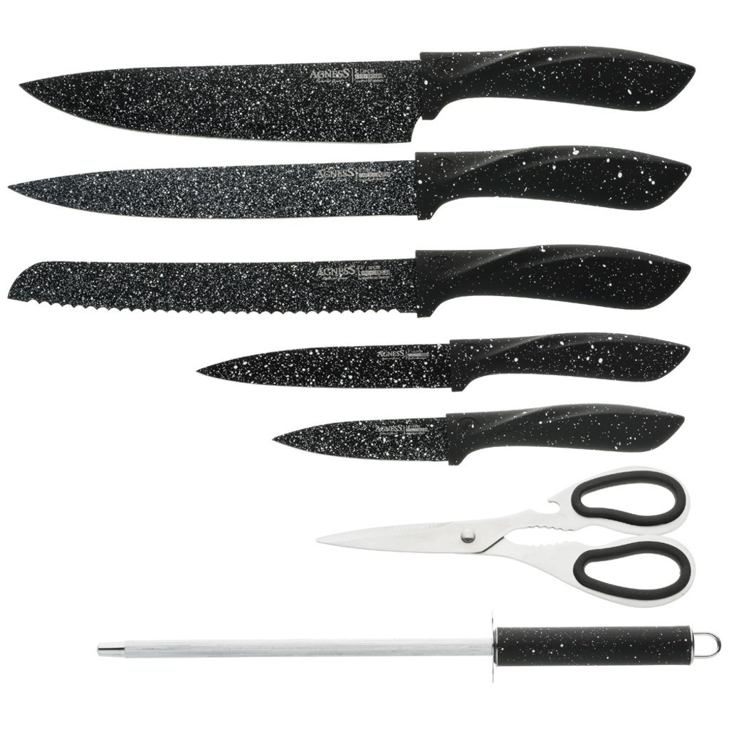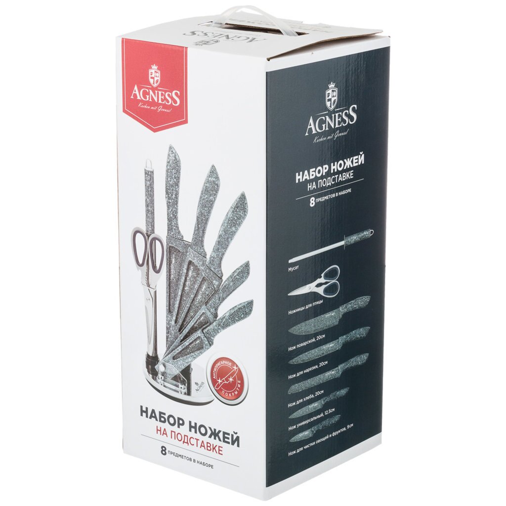 Вы можете приобрести «Набор ножей Agness с ножницами и мусатом на пластиковой подставке, 8 предметов, 911-675» и другие товары в нашем интернет-магазине в Старом Осколе по низким ценам и с бесплатным самовывозом.