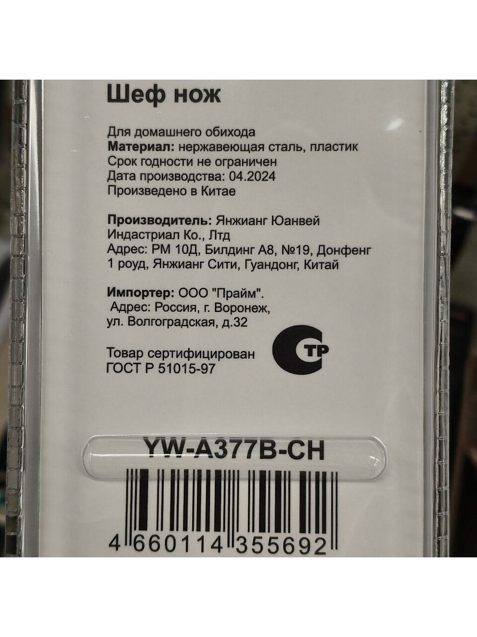 Вы можете приобрести «Нож кухонный Daniks, Gusto, шеф-нож, сталь, 20 см, рукоятка пластик, YW-A377B-CH» и другие товары в нашем интернет-магазине в Твери по низким ценам и с бесплатным самовывозом.