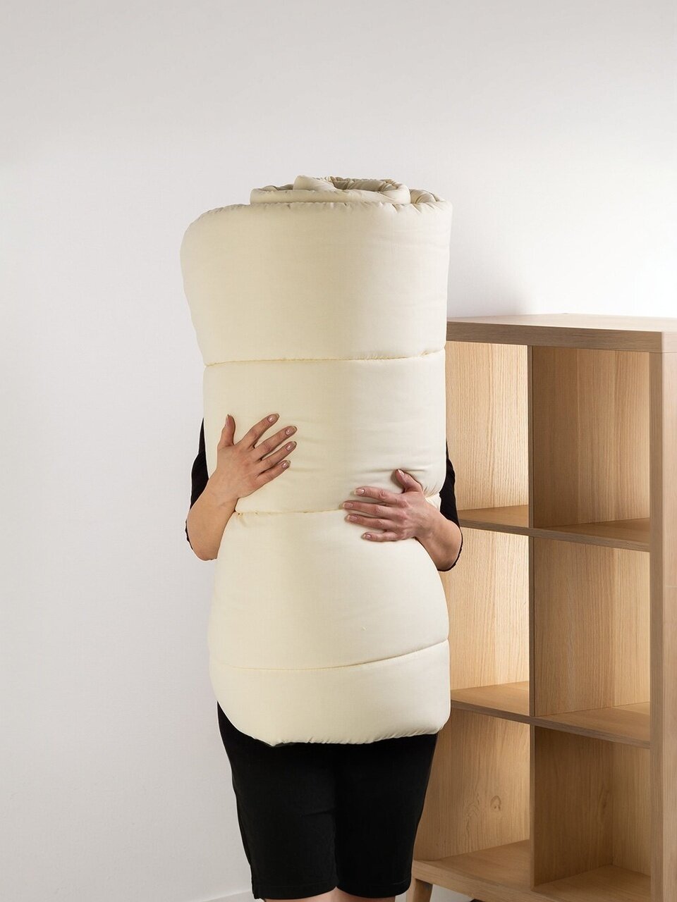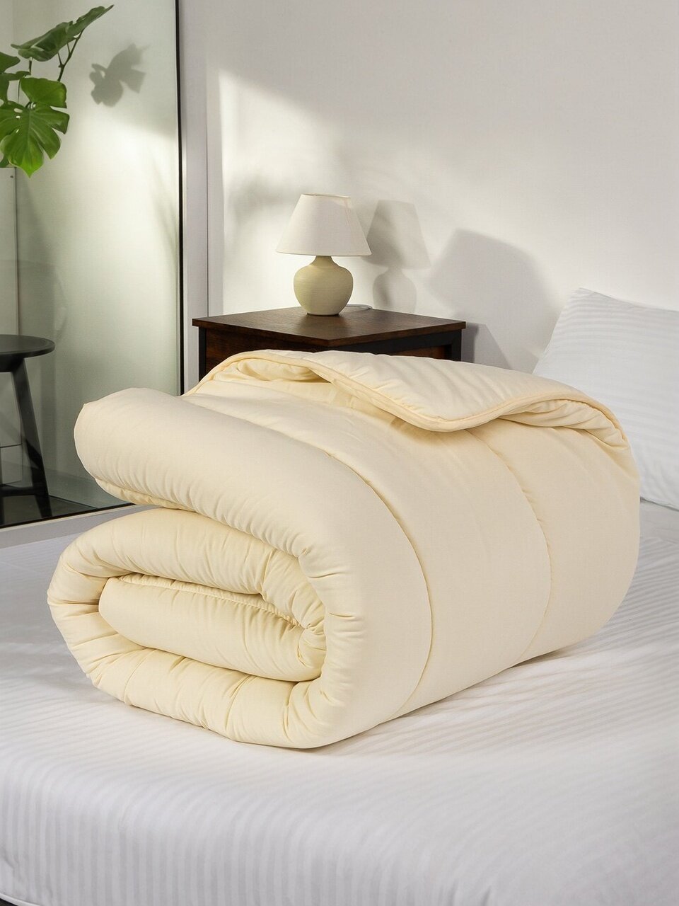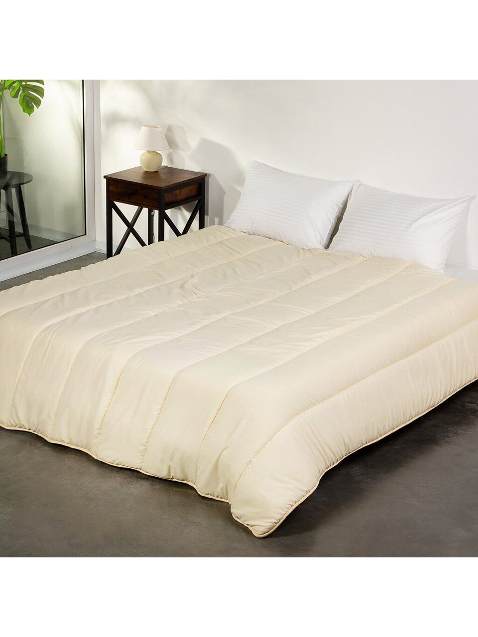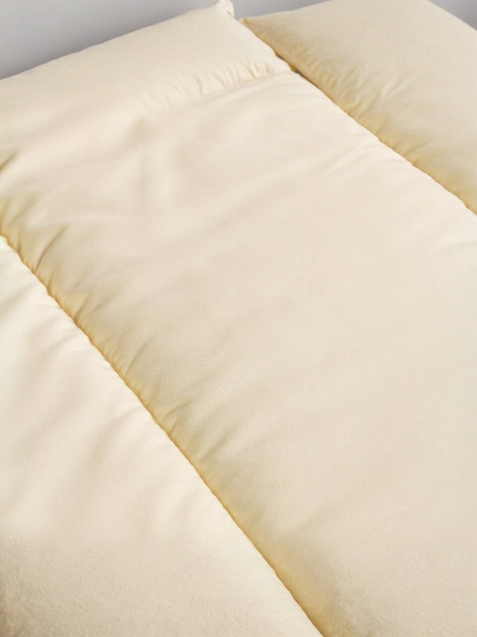 - Натуральный наполнитель — овечья шерсть: сохраняет тепло, дышит, подходит для круглогодичного использования