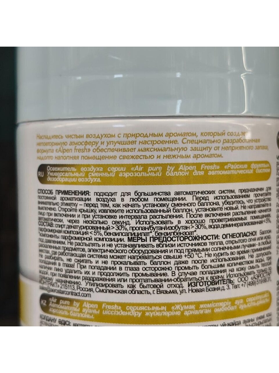 Погрузитесь в атмосферу свежести и наслаждения с освежителем воздуха Alpen, 250 мл, Райские фрукты. Этот сменный ароматизатор станет идеальным решением для создания уютной и приятной обстановки в любом помещении.