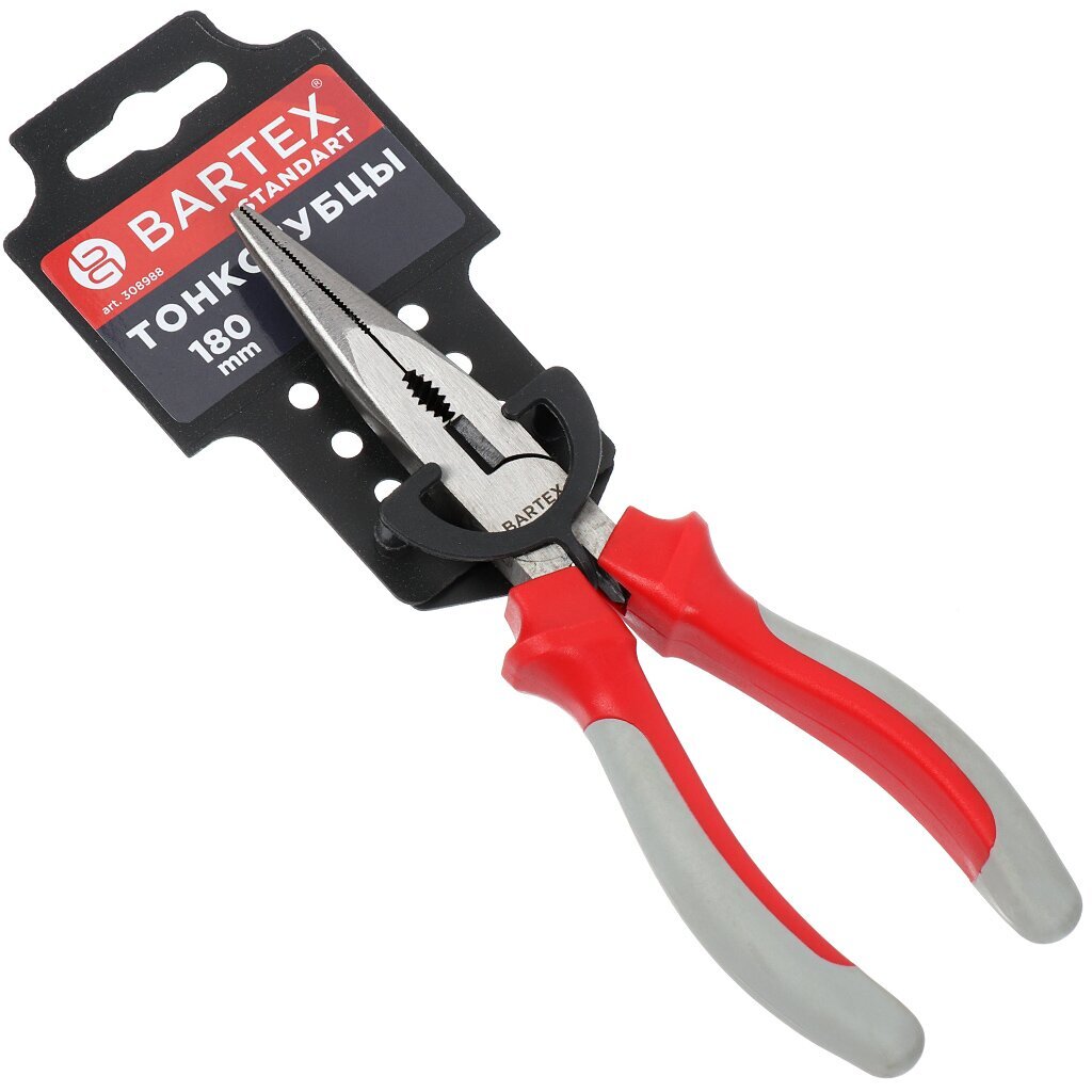 Тонкогубцы – это разновидность пассатиж с длинными и зауженными губками. Инструмент предназначен для выполнения более точных операций, таких как сгибание или выравнивание проволоки, работа с соединительными колечками или кримпами. Тонкогубцы Bartex Стандарт идеально подойдут для манипуляций в труднодоступных местах, где необходим захват мелких деталей.