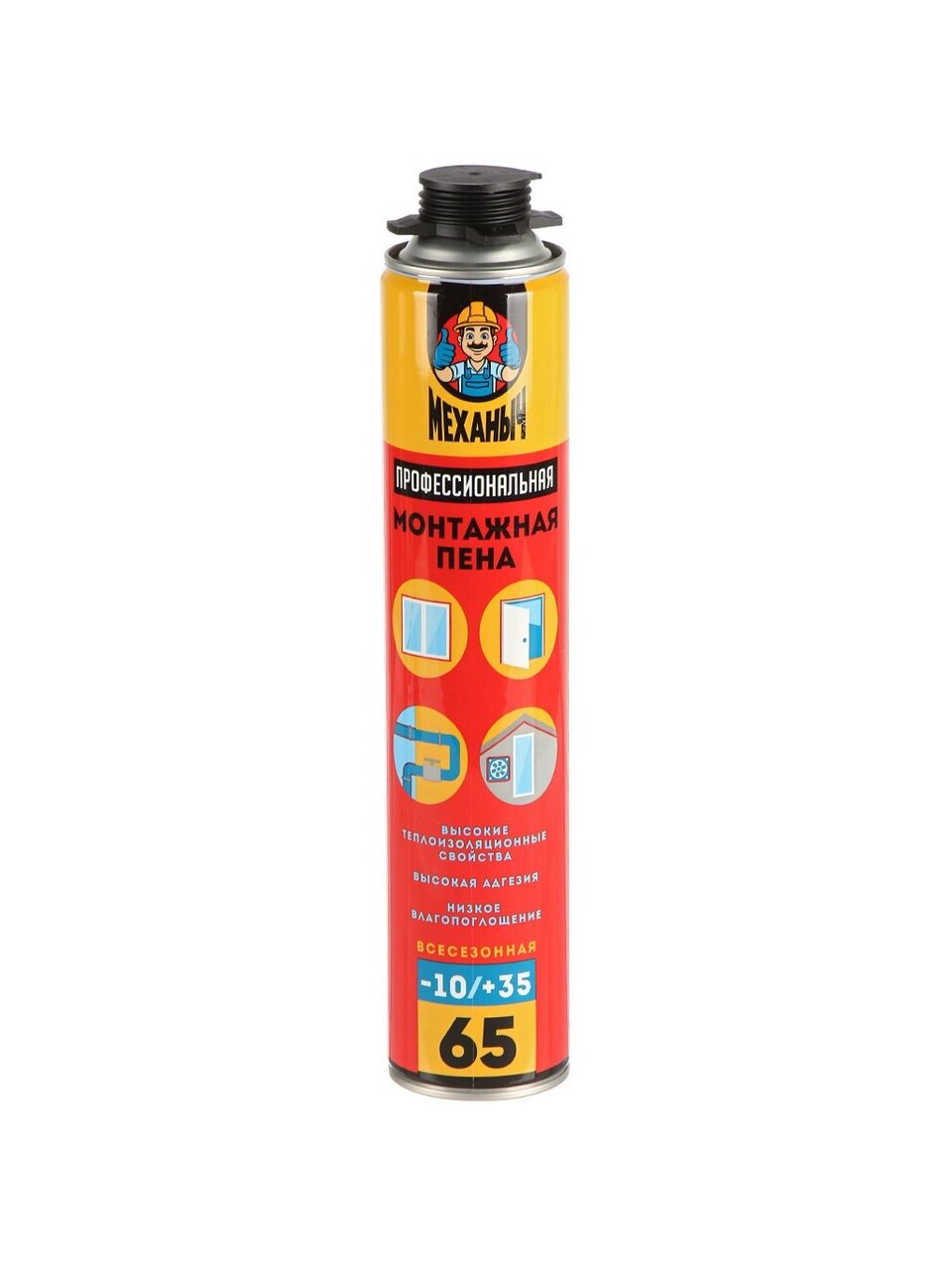Профессиональная монтажная пена Механыч 65 л — максимальный объём, надёжная теплоизоляция, работа при температуре от -10 до +35°С. Экономия и уверенность в результате.