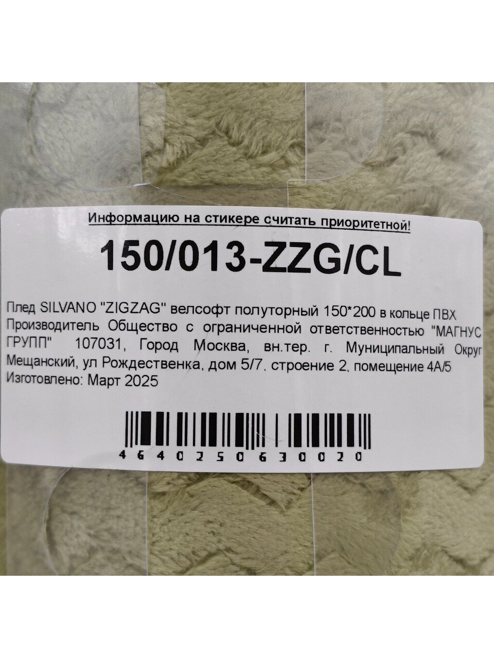 Вы можете приобрести «Плед 1.5-спальный, 150х200 см, велсофт жаккард, 100% полиэстер, Silvano, ZigZag, фисташка, 150/013-ZZG/CL» и другие товары в нашем интернет-магазине в Казани по низким ценам и с бесплатным самовывозом.