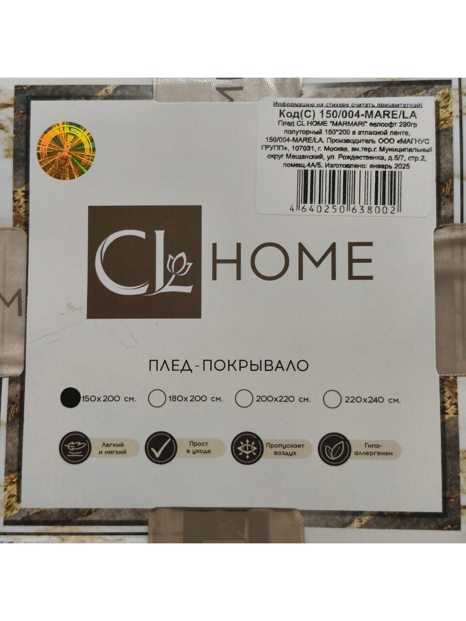 Плед велсофт 1.5-спальный 150х200 см CL Home Marmari: мягкость, тепло и стиль для дома, дачи или в подарок — выгодно и удобно заказать онлайн