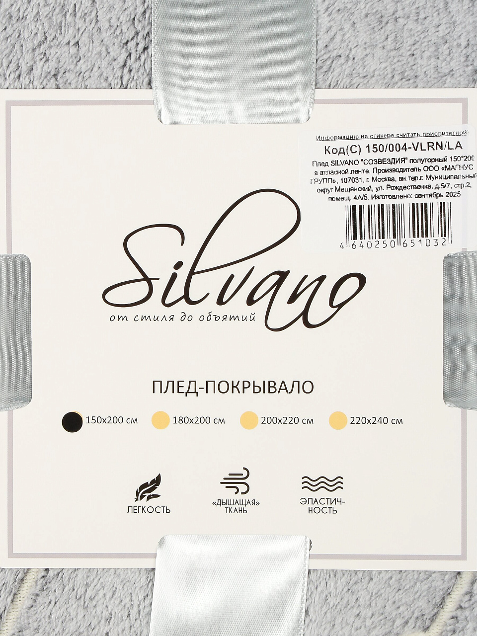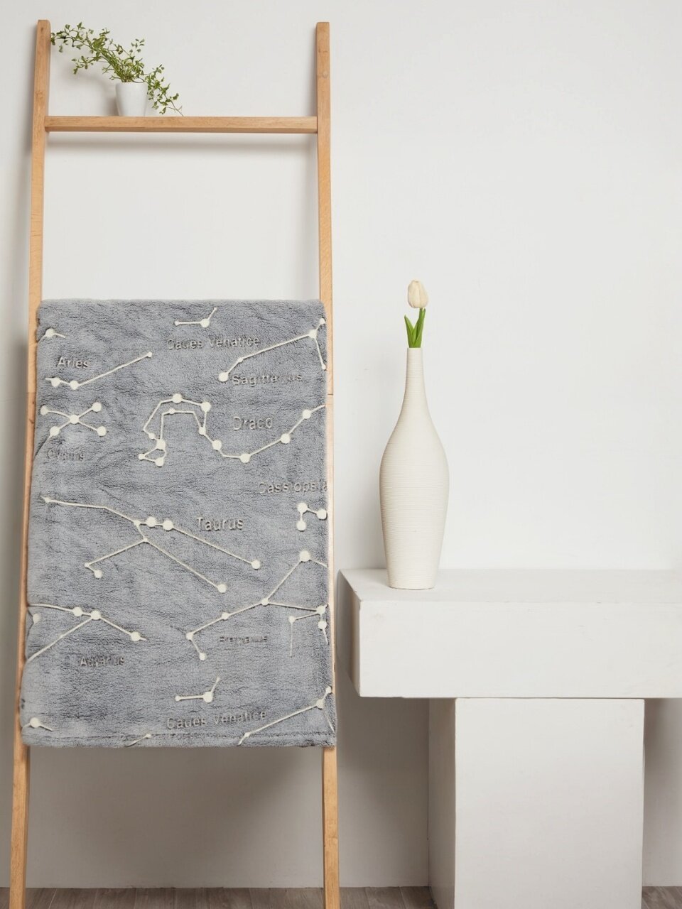 Плед 1.5-спальный, 150х200 см, велсофт жаккард, 100% полиэстер, Silvano, Созвездия, серый, 150/004-VLRN/LA